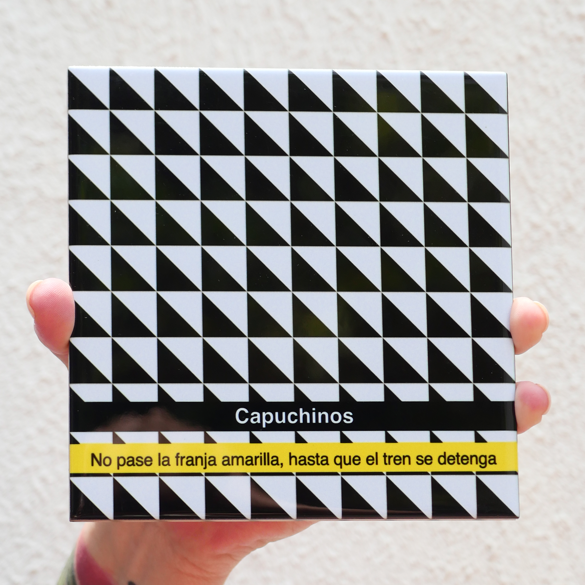 Cada baldosa de cerámica (15x15cm) es un pedazo de historia caraqueña. Impresas con los colores icónicos del Metro de Caracas, representan cualquiera de las 39 estaciones disponibles en las líneas 1, 2 y 3.